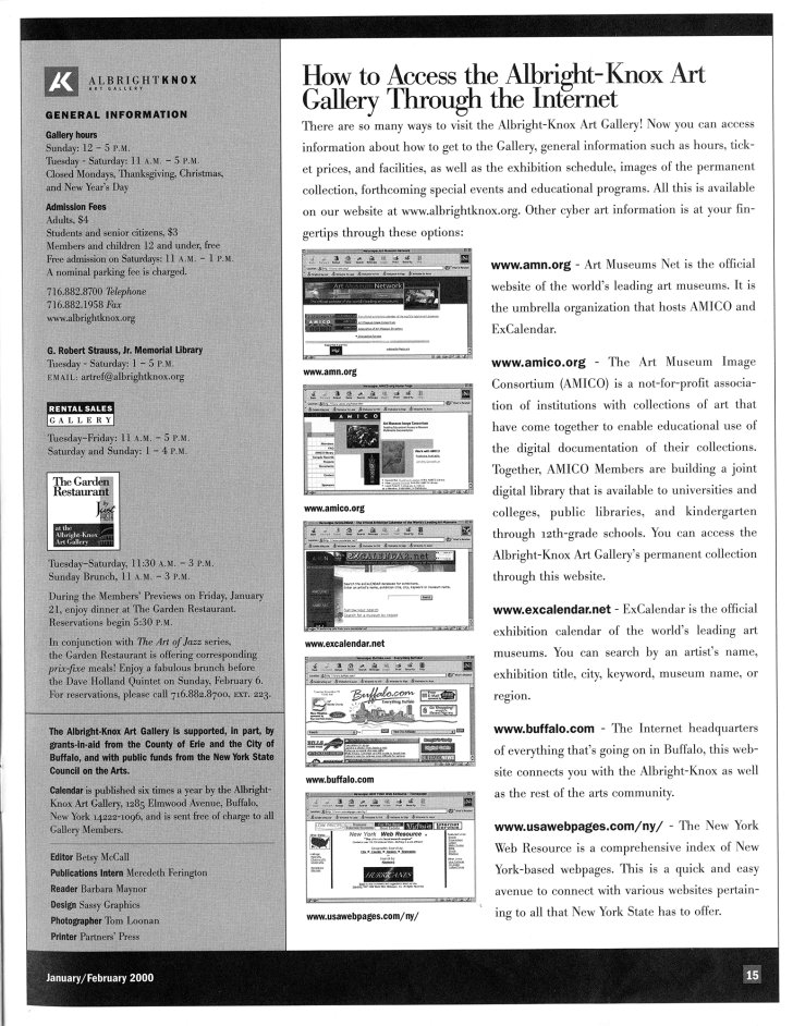 In 2000, the museum published directions for how to access our schedule and exhibitions online (pictured above). We've come a long way, and are proud to present our new 2016 website as a testament to the Albright-Knox's forward-looking spirit.