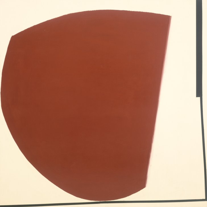 No, you’re not imagining things; the right-hand edge of the prominent red shape in Abstract in Red, No. 3, 1960, is intentionally meant to look out-of-focus. The visible blurriness is one of the “expanding effects” artist Victor Pasmore used to create “ambiguous images” that “transcend the boundaries and dimensions of the finite picture-plane.” He explained that “to get beyond dimension in terms of strictly dimensional material poses a paradox which, in reality, can only be solved in subjective terms; that is to say, by stimulating the imagination. To do this within the terms of surface-bound painting has been and still is my problem.”