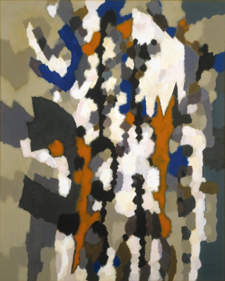 Several artists in the collection of the Albright-Knox Art Gallery served in the Monuments, Fine Arts, and Archives Section (MFAA) of the United States Armed Forces. Often referred to as the Monuments Men, this group of men and women from several nations contributed their expertise as museum directors, curators, art scholars and educators, artists, architects, and archivists to the fight for humanity. These three men included Louis Dlugosz (American, 1915–2002), William Gear (British, 1915–1997), and Salvatore C. Scarpitta, Jr. (American, 1919–2007).
