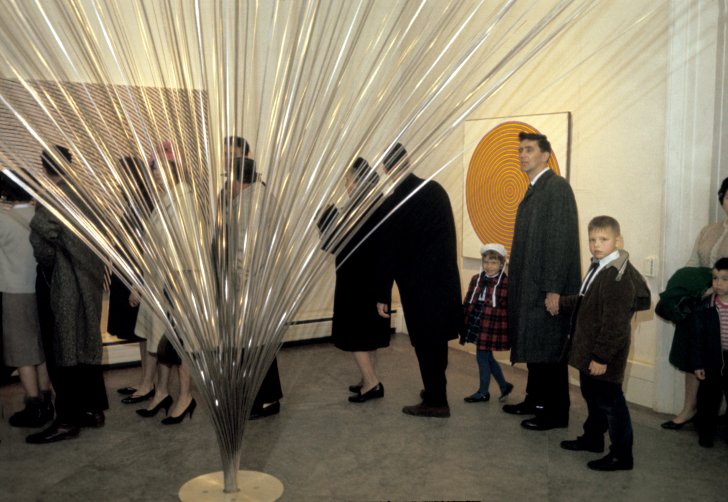 While Op was created and enjoyed around the world, it was especially popular in France, where many of the most important Op artists lived. Their works were understood as part of a legacy of European geometric art that originated in the early twentieth century with Neoplasticism and continued through movements such as Constructivism and Art Deco. As one of the significant public collections of abstract art in France, the Musée d’arts de Nantes began acquiring Op art in the 1970s; one highlight is a work by Jesús Rafael Soto donated in 1978 by Jean Gorin, the leading French practitioner of Neoplasticism, and his wife Suzanne.
