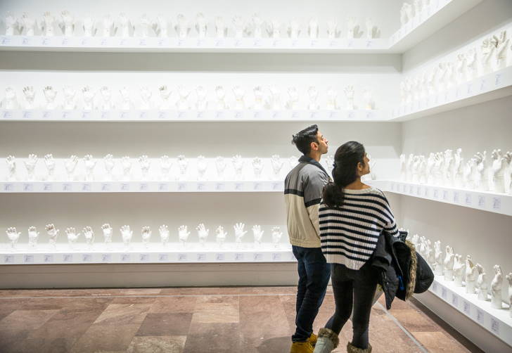 A Show of Hands offered Lin a way to continue and expand his art of social engagement after his release and return to Myanmar following a period of exile in London. Ultimately, the work is a kind of performance, in which volunteers are asked to “show their hands” and identify themselves as part of a community of survivors of human rights abuses. The installation of these hands transforms white plaster—long used to make casts of classical sculptures—into a material that helps make these important stories visible.