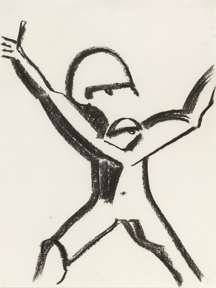 Bradley doesn’t like using good paper to make his drawings, claiming it would be “like cheating—to start with something beautiful.” Using cheap materials also means he might make twenty drawings at a sitting and throw away eighteen with no thought of waste. The two remaining drawings are often the first attempt and the last, the least self-conscious of the bunch, done when he’s utterly out of energy. For Bradley the best work comes with either freshness or exhaustion, and getting to either place means feeling some degree of comfort in his situation.