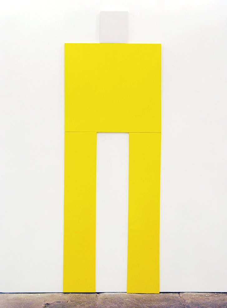 Many, like The Fisherman’s Friend, feature a rectangular stretcher that reads as a torso when installed above two long, skinny “legs” firmly standing on the floor and topped with a small square “head.” Bradley’s former college professor, the artist Dike Blair (American, born 1952), has written about the sense of humor conveyed in The Fisherman’s Friend: