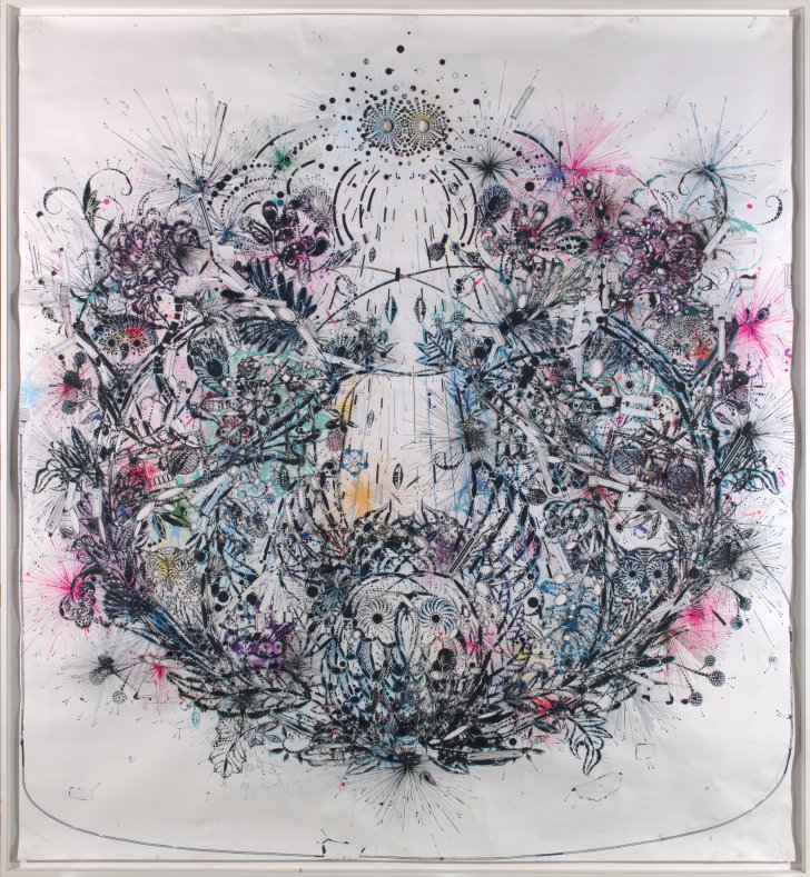 Reed Anderson (American, born 1969). Midnight Peacock Music, 2006. Acrylic on cut paper, 105 x 96 inches (266.7 x 243.8 cm). Collection Albright-Knox Art Gallery, Buffalo, New York; James S. Ely Fund, 2010 (2010:11). © 2006 Reed Anderson.
