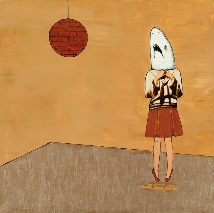 Shark Girl is not simply the creation of the artist Casey Riordan, she is also a reflection and persona of the artist. Riordan’s image of the half-shark half-girl originated in the early 2000s as a response to internalized anxiety and existential foreboding, a sense that she was not in control of her life. When she attempted to understand her anxieties, the closest parallel Riordan could draw was to her irrational childhood fear of sharks.