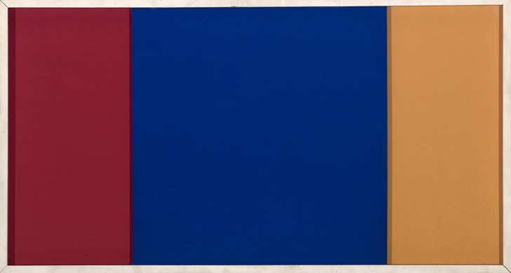 While at first glance Mobile Painting #17 appears to be a completely flat surface, the blue square in fact sits in a channel in front of the red and yellow squares and can be moved left or right to reconfigure the composition. The time-lapse video below captures the work's full range of motion.
