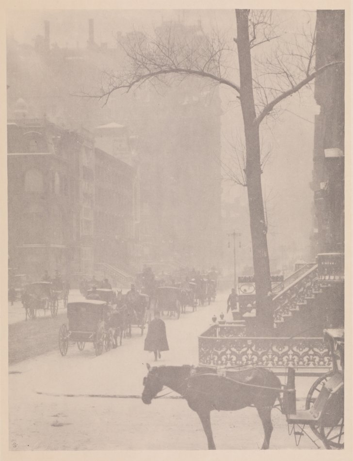 Alfred Stieglitz (American, 1864–1946). The Street, Fifth Avenue, 1896. Photogravure, 26 x 19 1/2 inches (66 x 49.5 cm). Collection Albright-Knox Art Gallery, Buffalo, New York; General Fund, 1911 (1911:9.11).