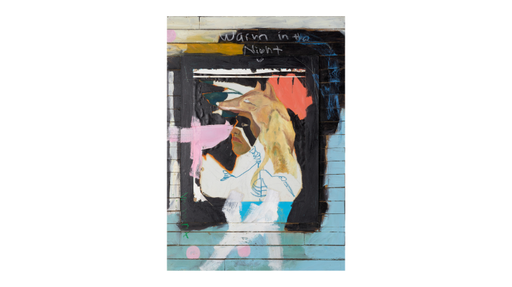 In addition to being a pivotal work in Carrier’s career, The Hand of the Devil Was Warm in the Night features many of the recurring elements in his practice. Formal elements, such as the sinuous lines and bold colors, but also the fact that it is painted on canvas attached to wood: he often stretches his canvases over found wooden objects, such as fragments of wooden pallets and fencing—or even paints directly onto them. In his choices, Carrier celebrates the readymade beauty in everyday objects, even discarded ones.