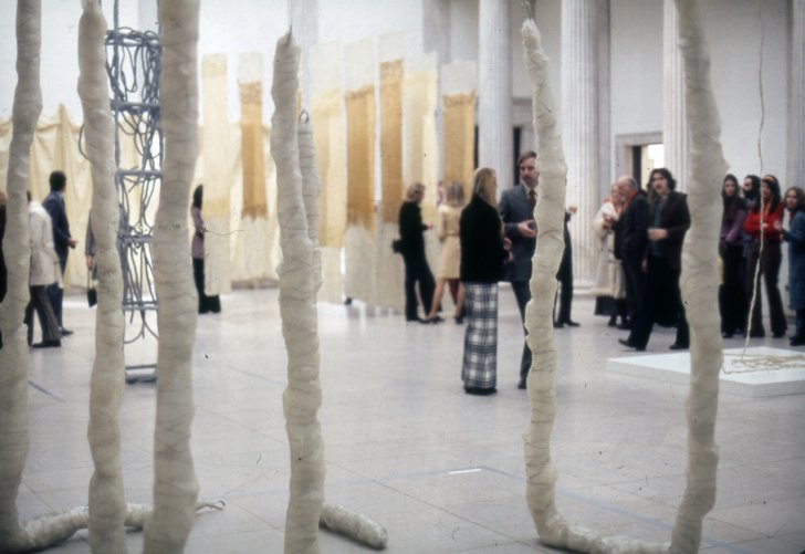 Eva Hesse: A Memorial Exhibition—on view at the Albright-Knox from March 6 to April 22, 1973—was the first inclusive showing of the artist’s work following her death in 1970. It presented a deep look at Hesse’s work, as well as her biography, in order to understand her working practices and artistic motivations.