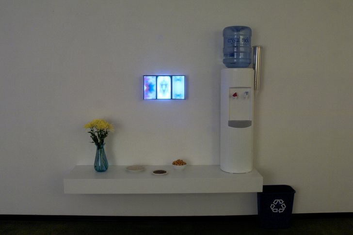 Pipilotti Rist: Dwelling (within) (2011) centered on Rist’s alles oder nichts (All or Nothing), 2010, an intimately scaled video sculpture containing imagery that straddles the line between what the artist refers to as the “corporal and the spiritual.” It the first work by the Swiss-born artist to be acquired by the Albright-Knox.