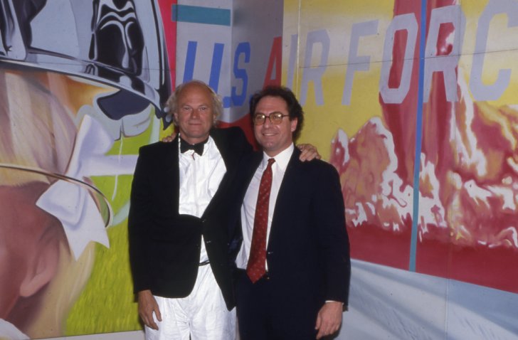 James Rosenquist and Albright-Knox Curator Michael Auping in front of Rosenquist's F-111, 1964–65, at the Members' Preview for James Rosenquist: Paintings, 1961–1985, March 14, 1986. Photograph by Tom Loonan.