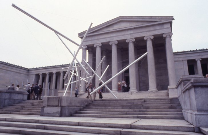 Kenneth Snelson's Coronation Day, 1980, installed in the City Court Plaza on Niagara Square in downtown Buffalo. Image courtesy of the Albright-Knox Art Gallery Digital Assets Collection and Archives, Buffalo, New York.