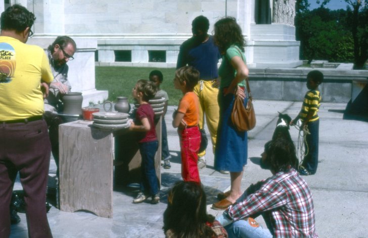 Between August 20 and 26, 1977, the Albright-Knox’s education department organized a series of Chinese pottery and calligraphy demonstrations in conjunction with the exhibition Far Eastern Art in Upstate New York. As part of the demonstrations, museum visitors could try their hands at painting, clay modeling, and printmaking techniques similar to those used to create works in the exhibition.