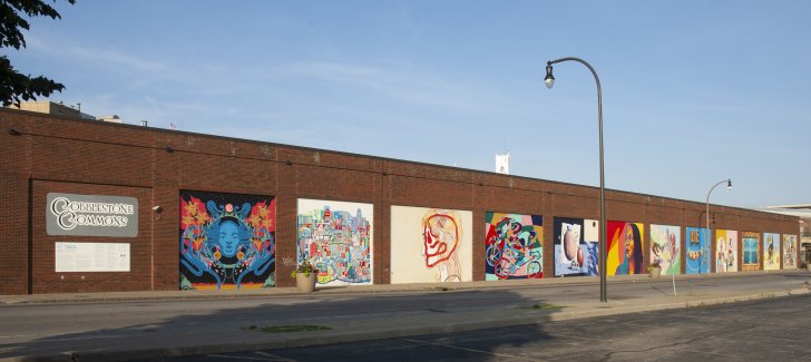 Cobblestone Commons murals. Photo: Brenda Bieger for Buffalo AKG Art Museum