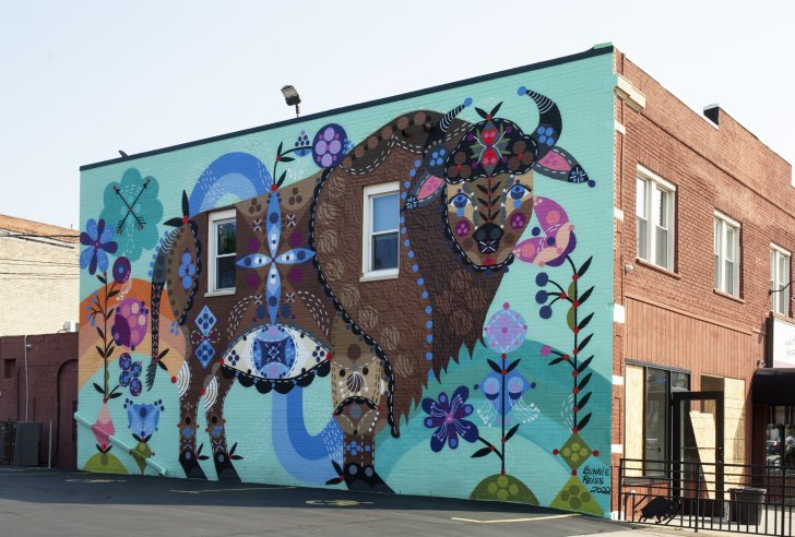 “I want people to feel good when they’re looking at my work, to simply have a nice emotional response. Mural painting has a real function in a community. It beautifies neighborhoods, shares stories, encourages people to interact and gather, helps people slow down their busy lives. Murals reach a large demographic because they’re accessible and free to everybody. The public has a right to beautiful things.”