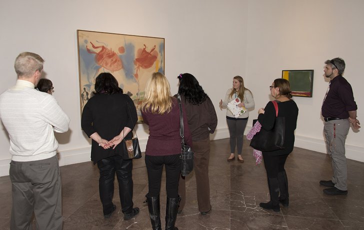 Visitors on a tour of Giving up One's Mark: Helen Frankenthaler in the 1960s and 1970s. Photograph by Tom Loonan.
