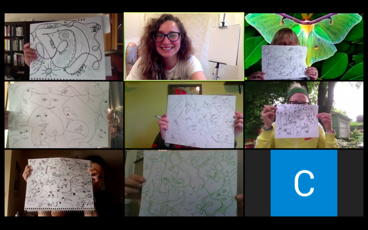 Screenshot of a virtual drawing class in June 2020.