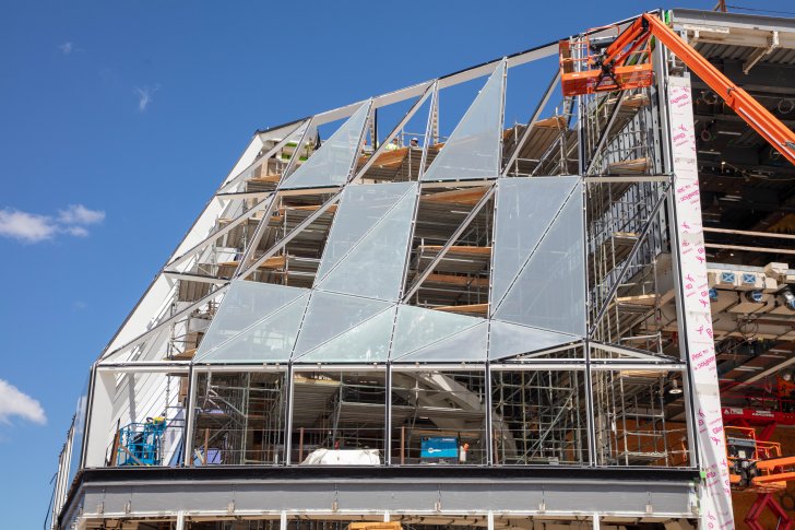Glass being installed in the new Jeffrey E. Gundlach Building. Photo: Jeff Mace