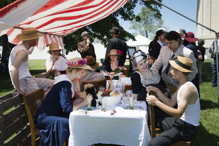 Students from West Valley Central School won the judges' Off-the-Beaten-Path Award for Most Unusual for their re-creation of Pierre-Auguste Renoir’s Luncheon of the Boating Party, 1880–81 (Collection Phillips Collection, Washington, D.C.), at Art Alive 2015. Photograph by Tom Loonan.