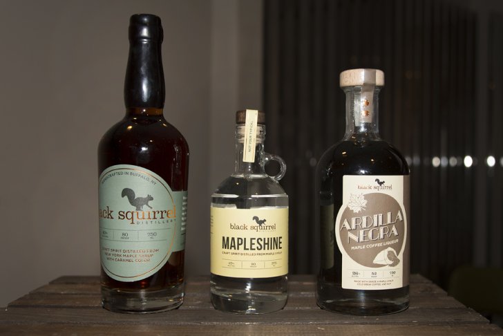 Black Squirrel Distillery opened its doors at 1595 Elmwood Avenue in 2015 after two years of planning, research, and development by three founders: Jason Schwinger, Brian Fending, and Matthew Pelkey. The craft farm distillery ferments New York State maple, distills it in copper pot stills, and ages it in French oak barrels to create small batches of distinctive spirits. Its initial product, Black Squirrel Aged Spirit, is like rum’s smooth New England cousin, neither sweet nor harsh. Its second offering, Mapleshine, is a multiply-distilled, filtered, and non-aged version of Black Squirrel that some might call moonshine. The distillery has recently introduced the first of a line of four liqueurs. Ardilla Negra combines Grade A maple syrup with house-made cold-pressed coffee and aged Caribbean rum.