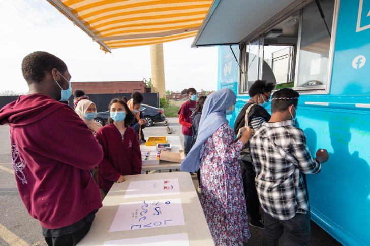 People participate in an art-making activity with the Art Truck at Albright-Knox Northland. Photo: Jeff Mace for Buffalo AKG Art Museum