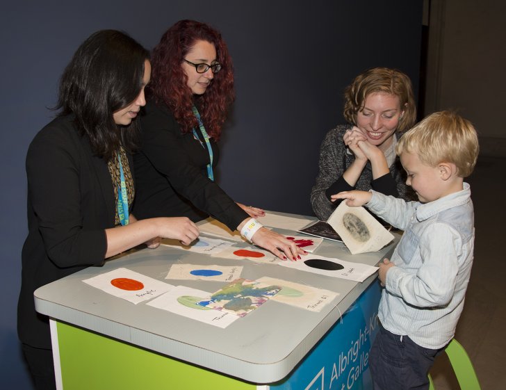 A young visitor interacts with materials on the Albright-Knox's ArtCart. Photograph by Tom Loonan.