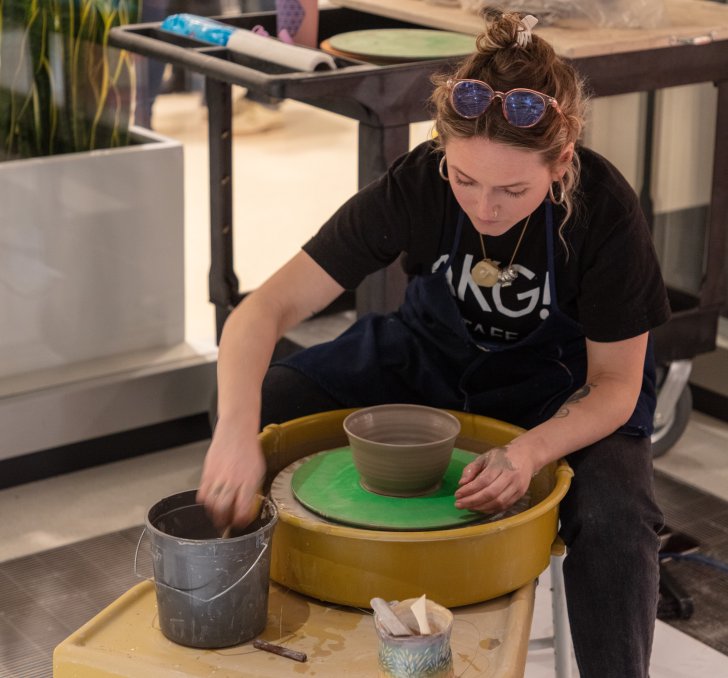 Learn to throw on a pottery wheel. Create, decorate, and glaze a personalized clay vessel to take home. (One accessible wheel is available for those who use a wheelchair.)