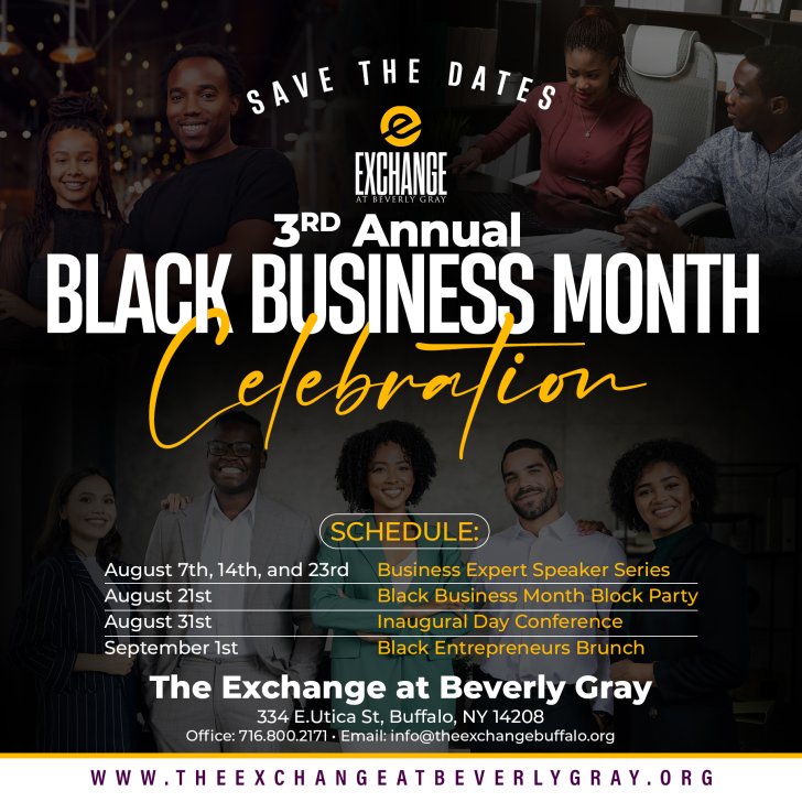 Join us on Friday, August 23, from 6 to 8 pm, for The Business of Art. In celebration of National Black Business Month, The Exchange at Beverly Gray, in partnership with the Buffalo AKG Art Museum, will host an expert speaker series for local creatives. A networking reception will follow the panel discussion and musical performance. Doors open at 5:30 pm and registration is free to all who attend.