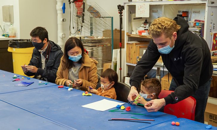Families make art in the classrooms during Family Funday at Albright-Knox Northland, November 14, 2021. Photo: Jeff Mace for Albright-Knox Art Gallery, Buffalo, New York
