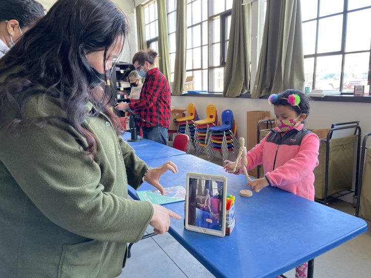 Families participate in a drop-in art activity led by Squeaky Wheel at Albright-Knox Northland during Family Funday, December 12, 2021. Photo: Sam Serrano for Albright-Knox Art Gallery, Buffalo, New York