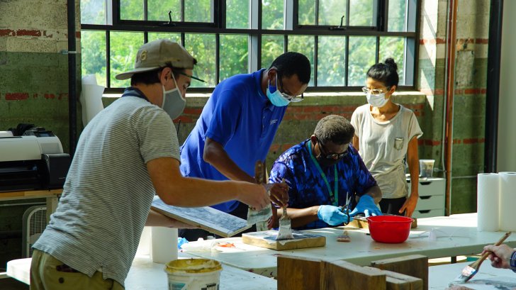 Workshop with artist Max Collins at Albright-Knox Northland in 2021. Photo by Jeff Mace.