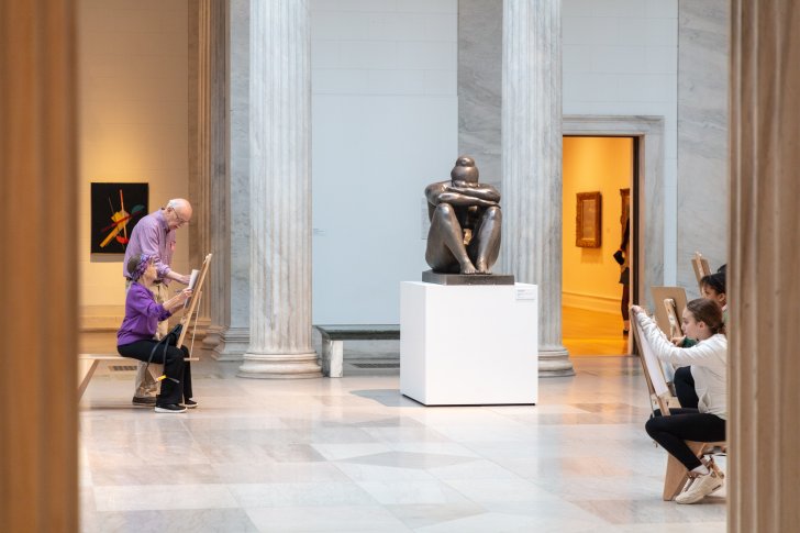 Visitors participating in Drop-In Drawing in the Wilmers Building. Photo: Jeff Mace
