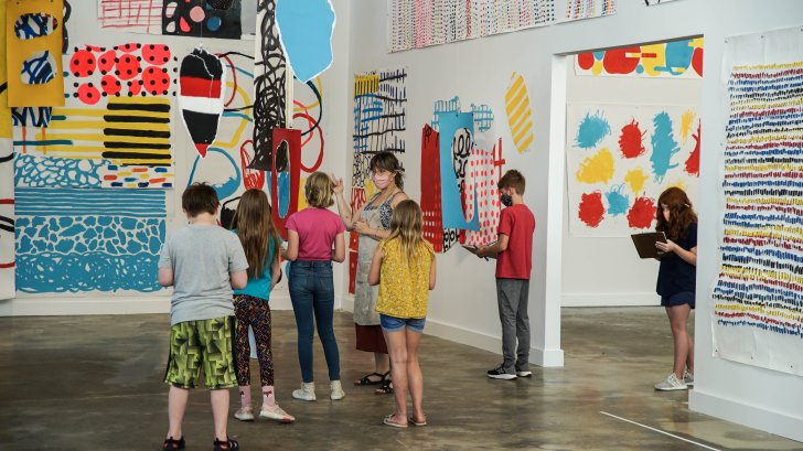 Guests participate in a tour of the special exhibition Hervé Tullet: Shape and Color at Albright-Knox Northland. Photo: Jeff Mace for Albright-Knox Art Gallery, Buffalo, New York
