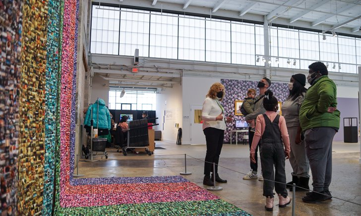 Visitors on a Family Fun Tour at Albright-Knox Northland on November 14, 2021. Photo: Jeff Mace for Albright-Knox Art Gallery, Buffalo, New York