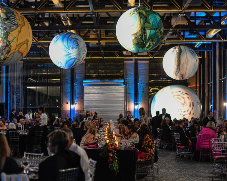 Guests sit under works by Anne Spalter at AKGala 2021 at The Powerhouse, November 12, 2021. Photo: Joe Cascio.
