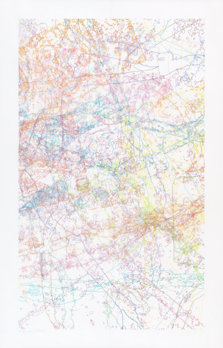 Ingrid Calame (American, born 1965). #313 Drawing (Tracings from Buffalo, NY), 2008. Colored pencil on trace Mylar, 112 x 72 inches (284.5 x 182.9 cm). Collection Albright-Knox Art Gallery, Buffalo, New York; George B. and Jenny R. Mathews Fund, by exchange, 2010 (2010:6). © 2008 Ingrid Calame. Image courtesy of the artist.