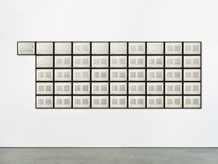 Hanne Darboven (German, 1941–2009). K: 15 x 15–F:15 x 15 (Ordner:1), 1972–73. Ink on vellum, forty-six sheets: 11 3/4 x 16 1/2 inches (30 x 42 cm) each. Collection Albright-Knox Art Gallery, The Panza Collection and George B. and Jenny R. Mathews Fund, by exchange, Bequest of Arthur B. Michael, by exchange, Albert H. Tracy Fund, by exchange and Bequest of John Mortimer Schiff, by exchange, 2015. Photograph by Alessandro Zambianchi – Simply. it, Milano.