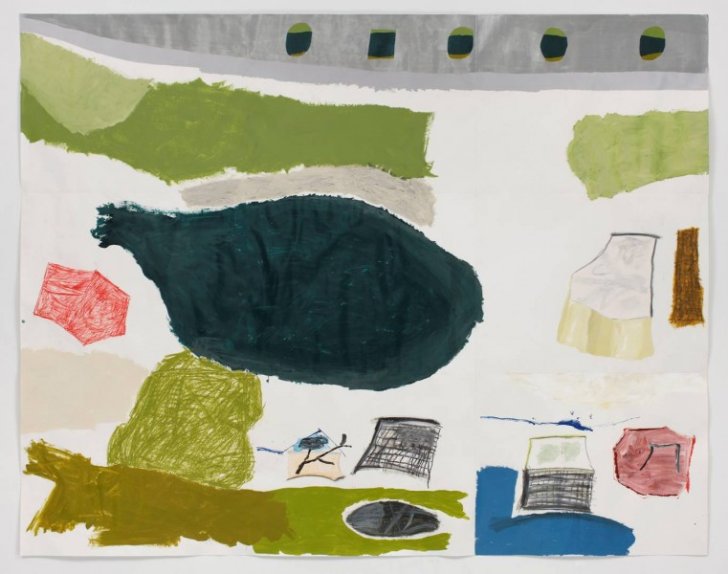Torey Thornton (American, born 1990). There's Solid Militia Fashion, but Come On, Domestic Like Focus Always, 2015. Acrylic paint, oil pastel, sharpie, graphite, nail polish, and marker on paper, 68 1/2 x 86 1/4 inches (174 x 219.1 cm). Courtesy of CANADA, LLC. Photograph courtesy of the artist and Moran Bondaroff.