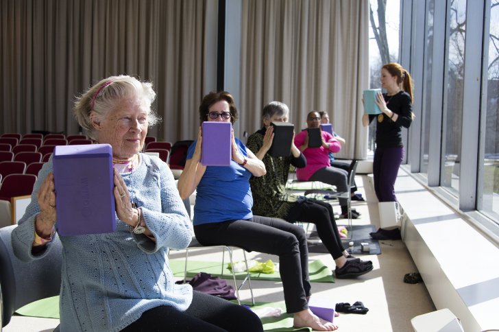 Explore gentle yoga postures, breathing techniques, and relaxation while seated and/or standing with the assistance of chairs. Increase body awareness, strengthen/lengthen muscles, and improve breathing and your sense of well being in a fun and safe environment. No experience or flexibility is required. Yoga mats are available, or bring your own mat.