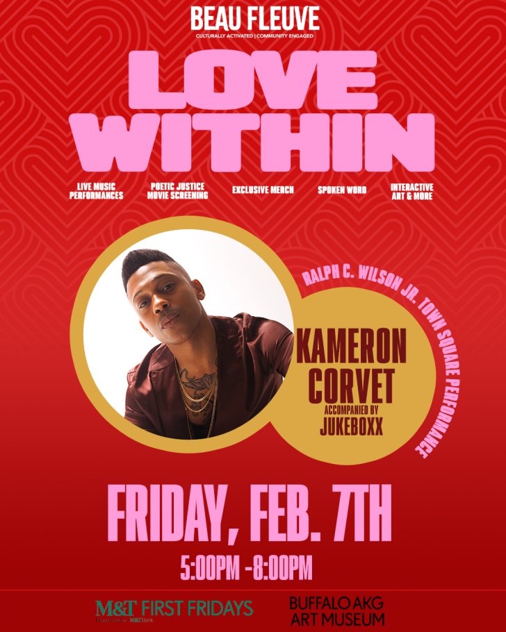 This M&T FIRST FRIDAY, Beau Fleuve presents Love Within, featuring a musical performance by Kameron Corvet & Jukeboxx.