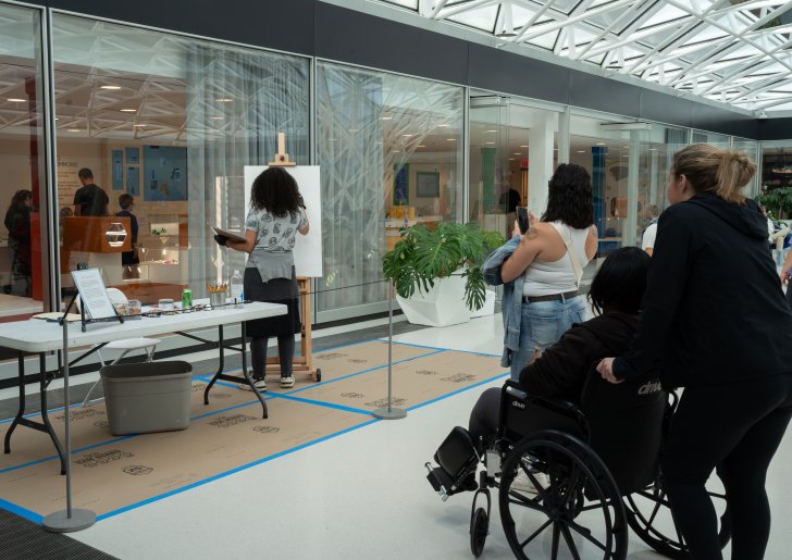 Artist Julia Bottoms doing a live painting demonstration in the Wilson Town Square. Photo: Nina Grenga