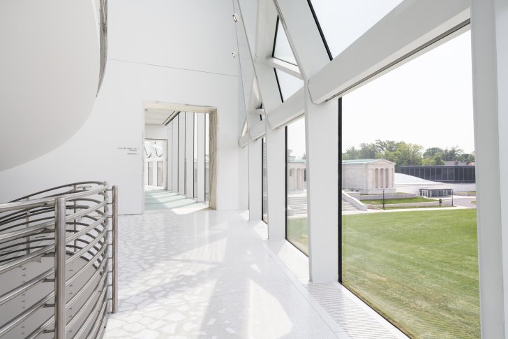 The second-floor Sculpture Terrace of the Gundlach Building with views out of the museum campus. Photo by Marco Cappelletti.