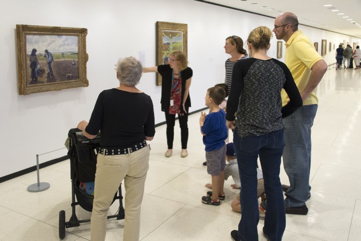 Guests on a tour in front of Camille Pissarro's Peasants in the Fields, Éragny, 1890 (Collection Albright-Knox Art Gallery). Photograph by Tom Loonan.