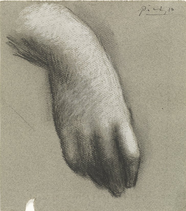 Pablo Picasso (Spanish, 1881–1973). Hand, ca. 1923. charcoal and chalk on grey paper, 8 11/16 x 7 3/4 inches (22.1 x 19.7 cm). Collection Albright-Knox Art Gallery, Buffalo, New York; Bequest of Norman E. Boasberg, 1962 (1962:5.6). © Succession Picasso / Artists Rights Society (ARS), New York.