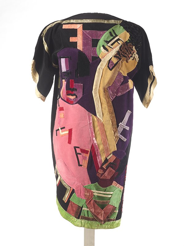 Jae Jarrell (American, born 1935). Ebony Family, ca. 1968. Velvet dress with velvet collage, 38 1/2 x 38 x 1/2 inches (97.8 x 96.5 x 1.3 cm). Brooklyn Museum, Gift of R.M. Atwater, Anna Wolfrom Dove, Alice Fiebiger, Joseph Fiebiger, Belle Campbell Harriss, and Emma L. Hyde, by exchange, Designated Purchase Fund, Mary Smith Dorward Fund, Dick S. Ramsay Fund, and Carll H. de Silver Fund, 2012.80.15. © Jae Jarrell. (Photo: Sarah DeSantis, Brooklyn Museum).