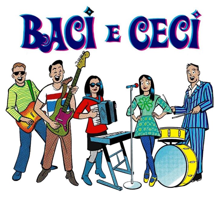 The music of Western New York’s Baci e Ceci (“kisses and chickpeas”) is your ticket to a cool Italian nightclub… no passport required! Featuring vocalist Kristin Gilmet and instrumentalists Cathy Carfagna (accordion, keyboard, vocals), Dave Meinzer (guitar), Jesse Reiter (bass, vocals) and Dave Gilmet (drums), Baci e Ceci plays upbeat, danceable “beat-pop” tunes made famous in the Sixties by Italian stars including Mina, Adriano Celentano, and Rita Pavone - along with Italian-language versions of classic songs by the Beatles, the Rolling Stones, the Mamas and the Papas, and more. Enjoy “la dolce vita” with Baci e Ceci!