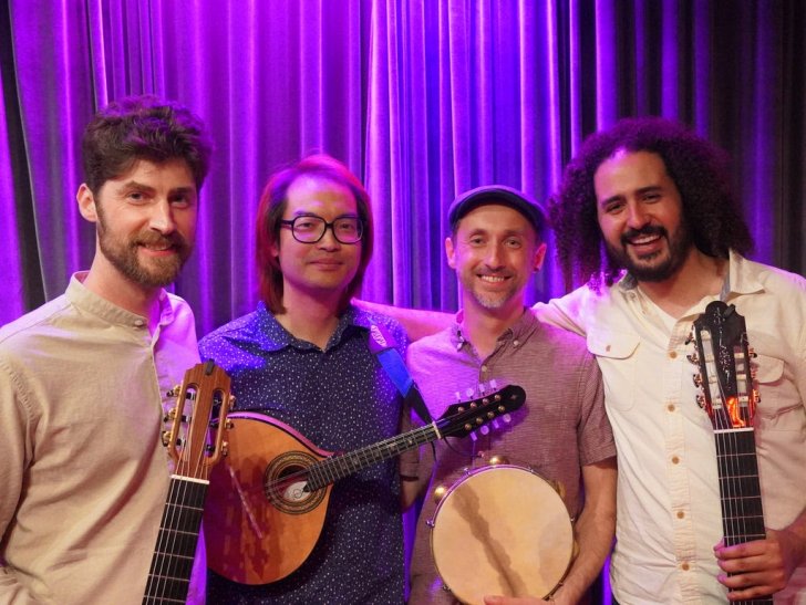 Rosa Boêmia (Ken Luk, bandolim; Bernardo Marcondes Rodrigues, guitar; Darien Lamen, pandeiro) specializes in Brazilian choro music. Originating in 19th-century Rio de Janeiro, choro is a popular instrumental music genre that began around the same time as samba. Contrary to its meaning “cry” or “lament,” choro is upbeat, joyous, and syncopated.