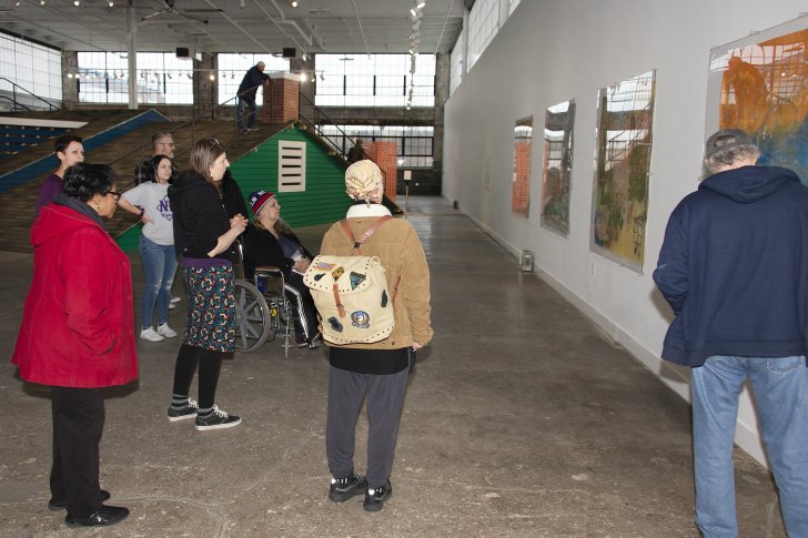 Veterans tour Open House: Domestic Thresholds by Heather Hart, Edra Soto, and Rodney Taylor at Albright-Knox Northland as part of the Vets AK program on February 1, 2020. Photograph by Tom Loonan.