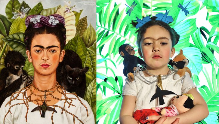 Re-creation of Frida Kahlo’s Self-Portrait with Thorn Necklace and Hummingbird, 1940 (Nickolas Muray Collection of Mexican Art)