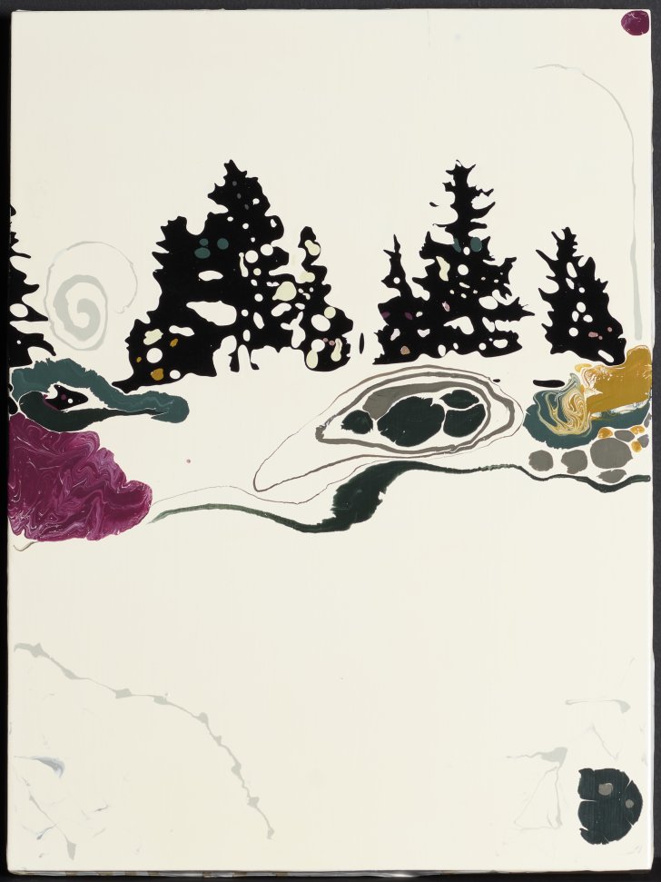 Clare Woods (British, born 1972). Angel Cap 2, 2004. Enamel on wood panel, 15 7/8 x 11 7/8 inches (40.3 x 30.2 cm). Collection Albright-Knox Art Gallery, Buffalo, New York; Gift of Deborah Ronnen, 2020 (2020:2.1).